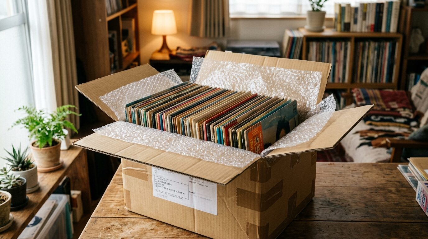 - 隙間は緩衝材で埋める:プチプチや新聞紙を使い、箱の中でレコードが動かないようにする