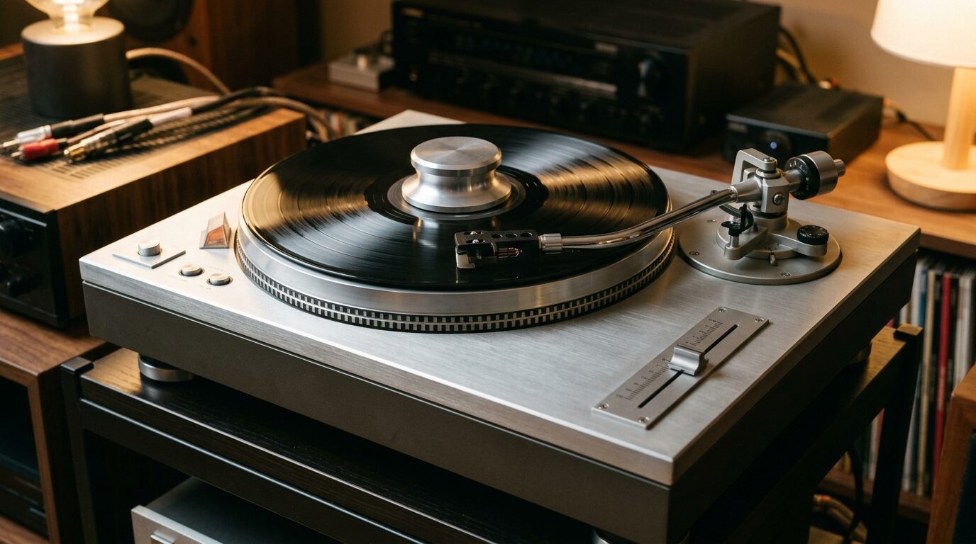1980年代以降、SL-1200はDJカルチャーの現場で絶大な支持を集めます。ピッチコントロールスライダーの精密さ、プラッターの重量感、ターンテーブルとしての耐久性——クラブのDJブースに置かれた2台のSL-1200は、いつしか時代のアイコンになりました。洋楽ロックのレコード買取相場一覧でも触れていますが、1980〜90年代のロック・ファンにとっても「SL-1200でレコードを聴く」は憧れでしたよね。