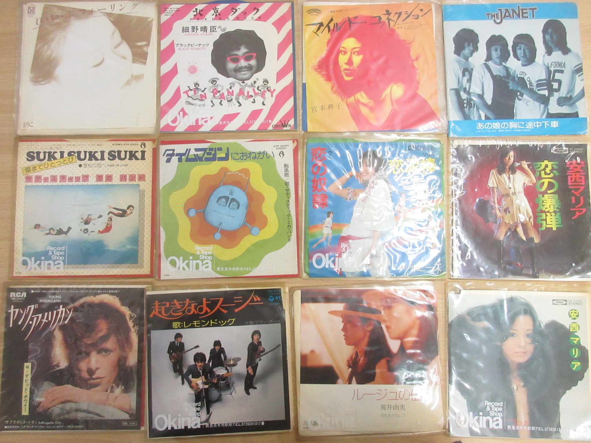 他の内容は荒井由実の「きっと言える/ひこうき雲」「ルージュの伝言」など初期のころのシングルレコード、サディスティック・ミカ・バンド、カルメンマキ&OZ、矢野顕子、ジャネット、ポピーズ、内田裕也などEPでお値段のつくものが多かったです。ただ惜しいことに多かれ少なかれ盤面の曇っているものが結構ありました……