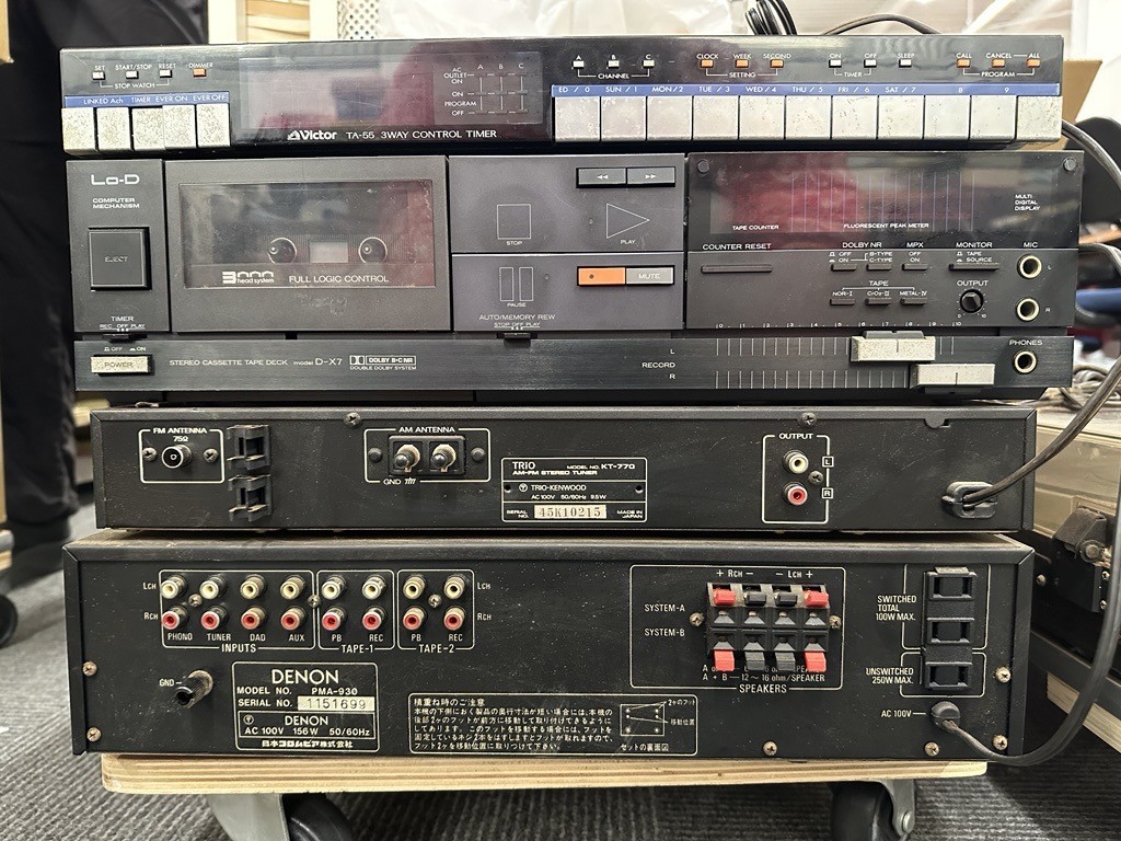 また、オーディオ機器につきましても、DENON DP-45F、DIATONEのスピーカー、VICTOR TA-55、Lo-D D-X7、TRIO KT-770、DENON PMA-930など、当時の国内オーディオ技術の高さを象徴するモデルが揃っており、単なる付属品としてではなく、再評価すべき価値のある構成でした。