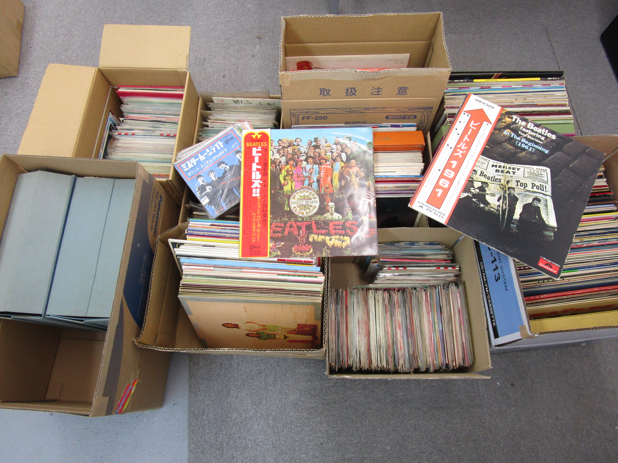 兵庫県からお越しいただき、1000枚程のレコードを買取致しました。「古いだけのものですわ」とおっしゃっていましたが、手始めに手に取ったEPがビートルズでした。さらにベンチャーズ、モンキーズと洋楽シングルが2、30枚はあります。