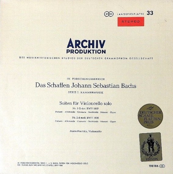 【レコード買取価格】フルニエ / バッハ 無伴奏チェロ組曲