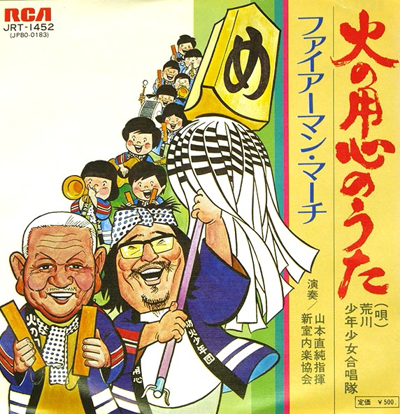 日本のテレビ黎明期から活躍する荒川少年少女合唱隊による、童謡・教育ソング系のシングルです。「戸締り用心、火の用心」というフレーズでお馴染みの、笹川良一氏が出演していた日本船舶振興会のCMソングとしても記憶されている方が多いかもしれません(※本盤の正確なタイアップ等は要確認ですが、同種の啓蒙ソングとして親しまれました)。昭和の生活史を感じさせる一枚です。