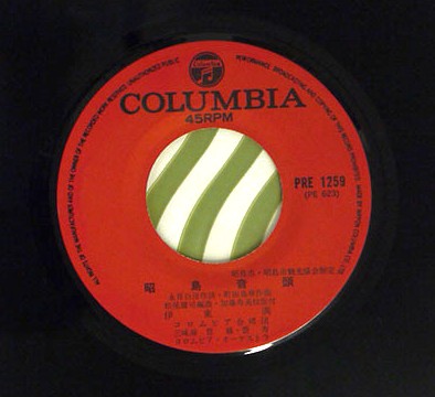 東京都昭島市のご当地音頭レコード。歌うのは大御所・島倉千代子と伊藤満。こうした「委託制作盤(PRE規格など)」は、地元のお祭りや盆踊りのために制作・配布されたもので、一般流通品ではありません。しかし、島倉千代子のような国民的歌手が歌っていることで、コレクターズアイテムとしての価値が生まれます。