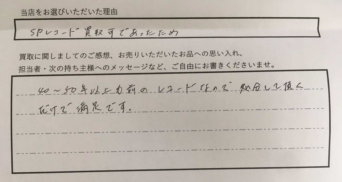 “40~50年以上も昔のレコードなので処分していただくだけで満足です。”