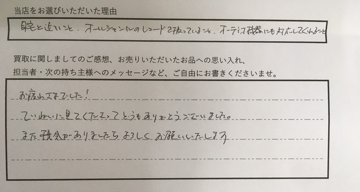 「自宅と近いこと、オールジャンルのレコードを扱っていること、オーディオ機器にも対応してくれること」